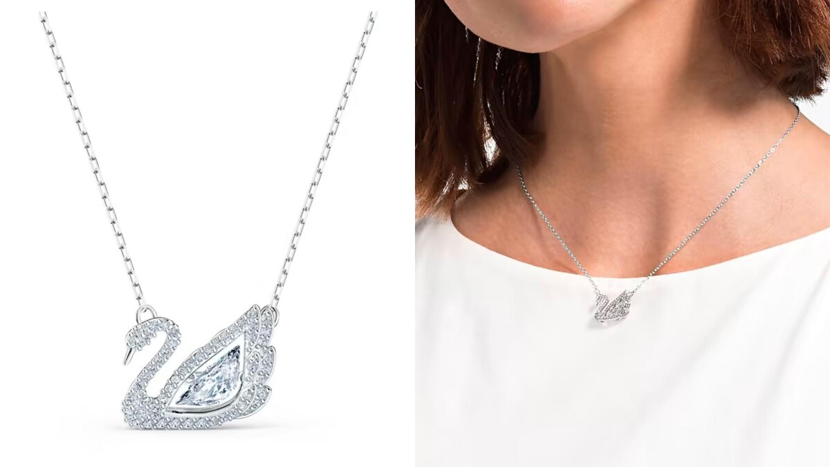 - Dazzling Swan 項鏈 天鵝, 白色, 鍍白金色