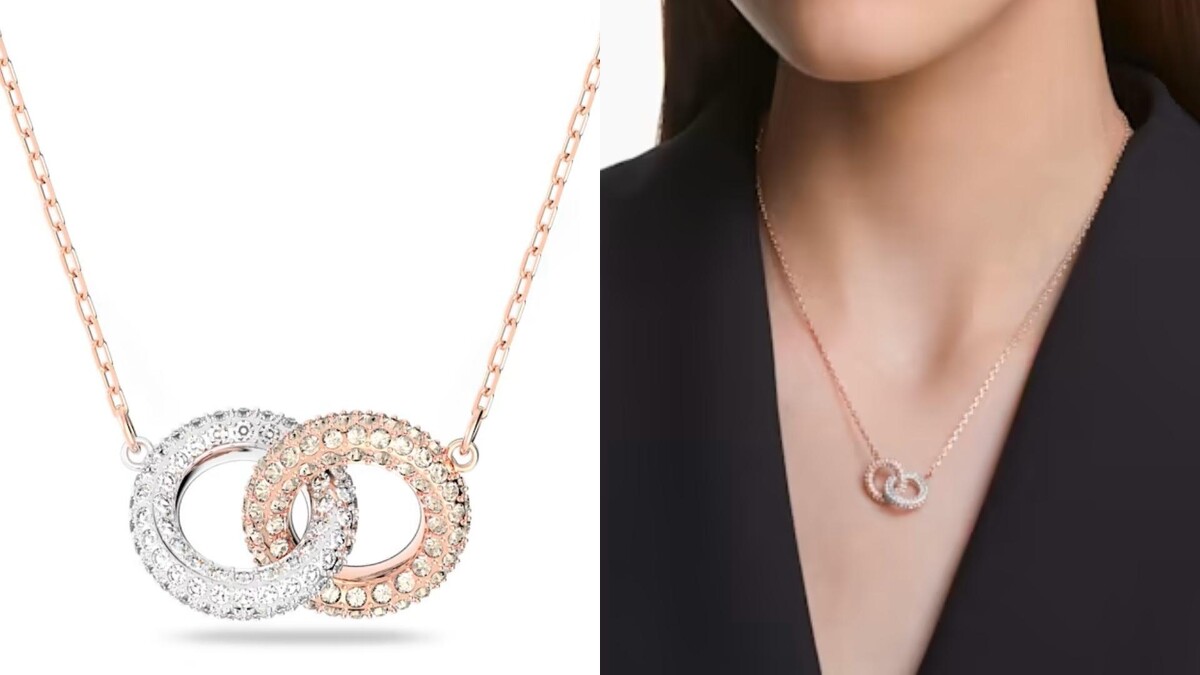 - Stone 項鏈 交錯圓圈, 白色, 鍍玫瑰金色調