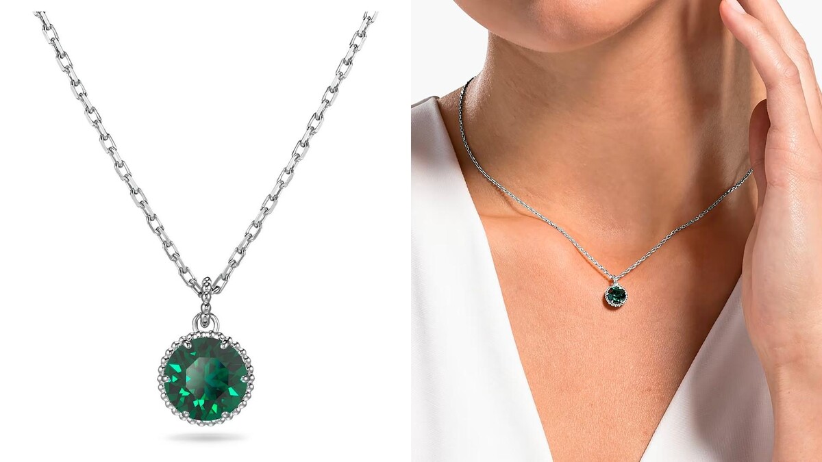 - Birthstone 生辰石鏈墜 圓形切割, 五月, 綠色, 鍍白金色