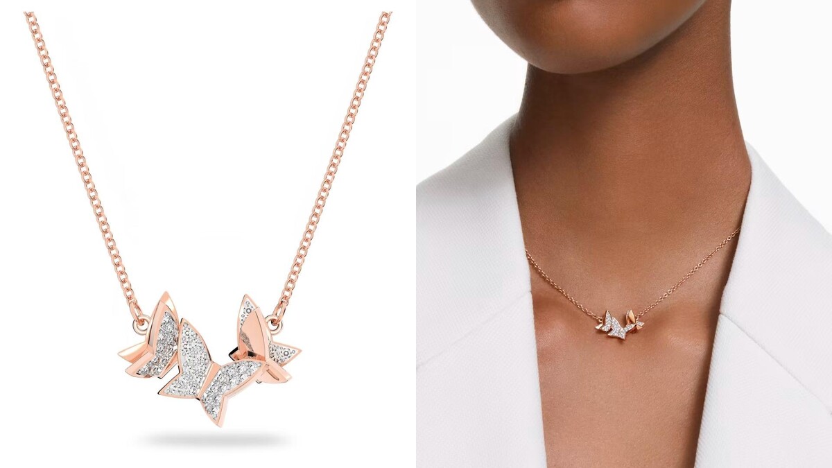 - Lilia 項鏈 蝴蝶, 白色, 鍍玫瑰金色調