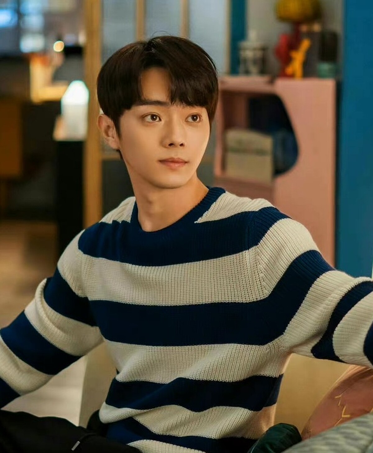 暖男系歐巴、青春大學生,許凱的居家穿搭多了一抹青澀感,以條紋針織衫、學院風毛衣展現氣質、內斂的一面。