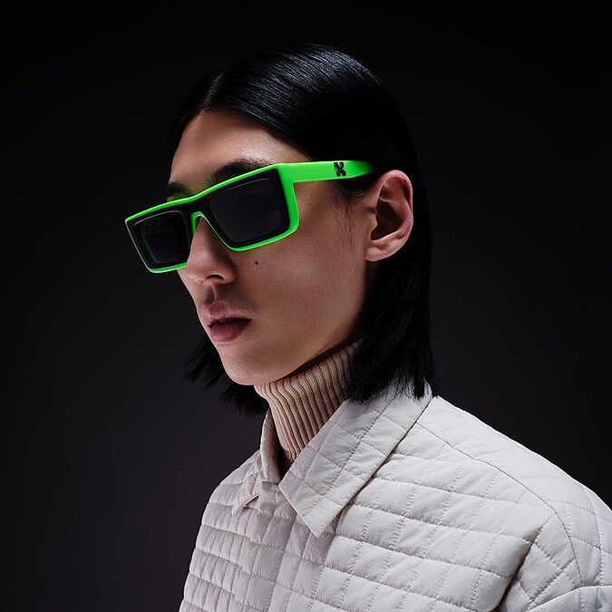 本次 2022 秋冬系列以「透過油畫」(Through the Canvas)為主題,致敬已故設計師 Virgil Abloh 在藝術文化上的琢磨與創作,無性別的核心理念跳脫框架,前衛又大膽。如同 Virgil Abloh 擅長的建築式設計輪廓,此次新推出的款式也有建築雕塑的影子,建築線性美學與非常規圖案交織成多彩繽紛的墨鏡款式。