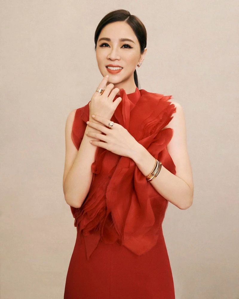 胸前的對疊設計,為整件禮服增添層次感,搭配鮮明紅色系,讓謝盈萱站在舞台上超搶眼。
