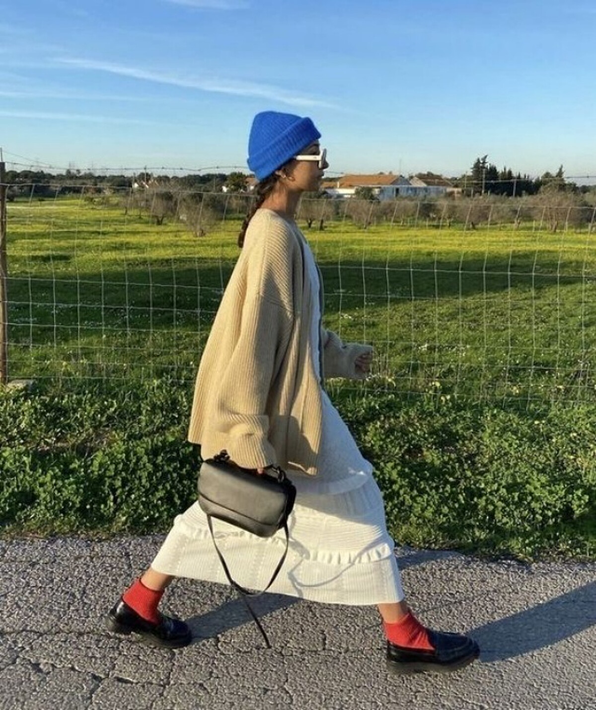 如果你想在淑女的裸色穿搭中展現一點自己的小叛逆,不妨試試用淺色單品搭配高飽和度或是亮色單品來做出吸睛的跳色效果,讓你就算穿低調的裸色也能一秒聚焦街頭!(圖片來源:123)