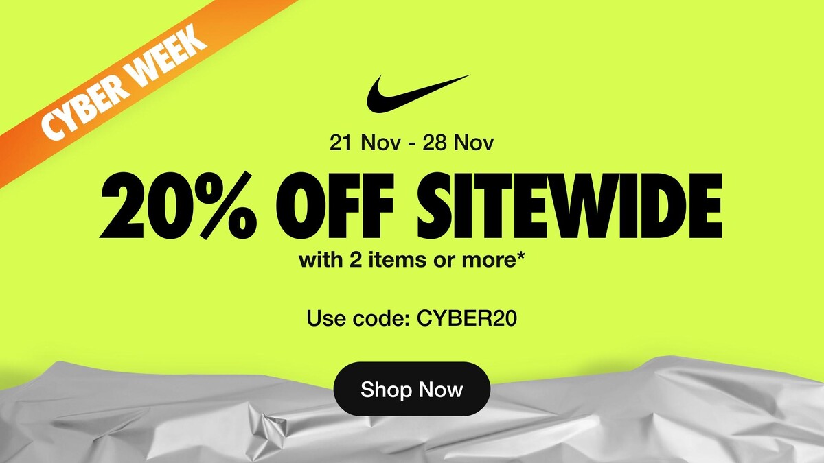 即日起至11月28日晚上 11:59 ,在Nike台灣官網購物滿兩件,結帳時輸入折扣碼【CYBER20】,折價商品可再享額外8折優惠!7雙品牌不敗鞋款推薦,雙11沒跟到的朋友這次別再錯過了!