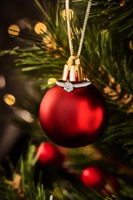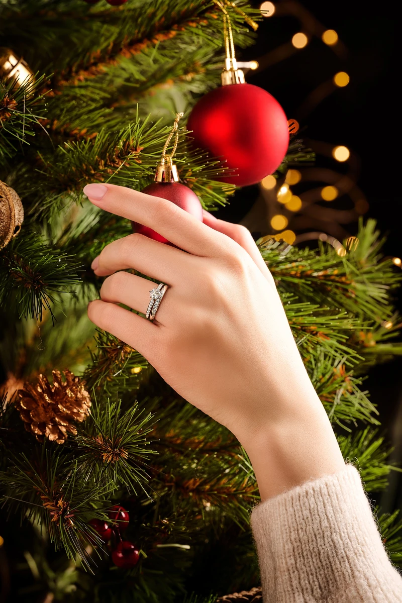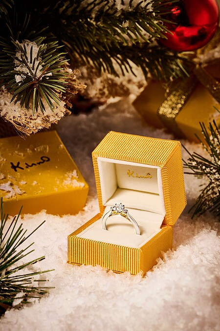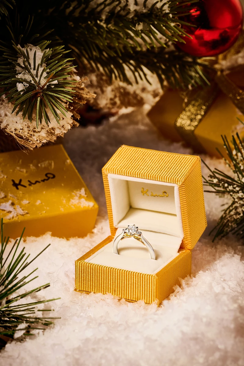 藉著慢慢布置裝點聖誕樹的過程,將求婚鑽戒掛在裝飾上,透過寫新年願望紙條的浪漫小心機,讓閃爍光芒的求婚鑽戒被發現,這樣用心的驚喜巧思搭配上K.UNO最新系列以璀璨耀眼作為主要設計概念的Brightness求婚鑽戒,簡直就是最完美的搭配。