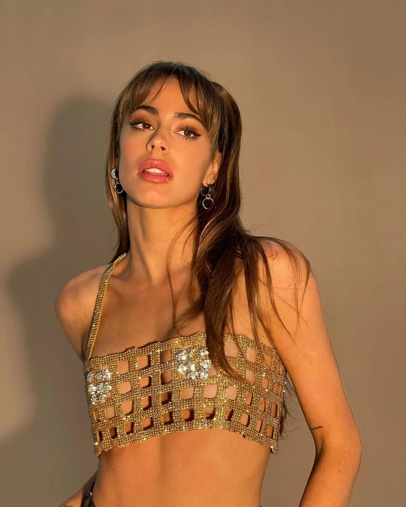 讓阿根廷足球天菜羅德里戈德保羅神魂顛倒的歌手Tini,同樣也是辣嫂團代表,不論是歌唱表演或是私下外出,Tini身上的穿搭行頭一件比一件清涼、一套比一套火辣,短版上衣搭牛仔褲是基本盤,Bra Top配上迷你短裙也沒有少見,難怪羅德里戈德保羅一見她就愛。