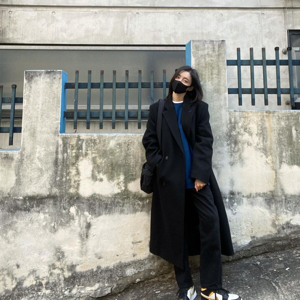 不僅是性感風擔當,朴智賢偶爾也會選擇走率性路線,像是T-Shirt搭配針織毛衣和深色長褲,再罩上一件長版大衣,增加穿搭的層次感,無非是冬季零失誤的穿搭法則。
