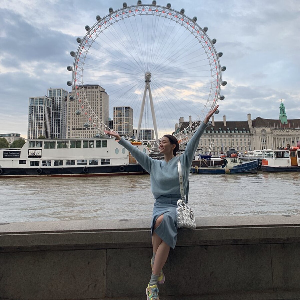 朴智賢到國外旅行時,選擇針織毛衣搭配開衩牛仔裙的溫柔系穿搭,陪伴他一同外出的,還有超吸睛的銀色Lady Dior包款,包身上獨特的藤格紋圖案,加上同色系的寬版皮革背帶,直接成為朴智賢的穿搭亮點。