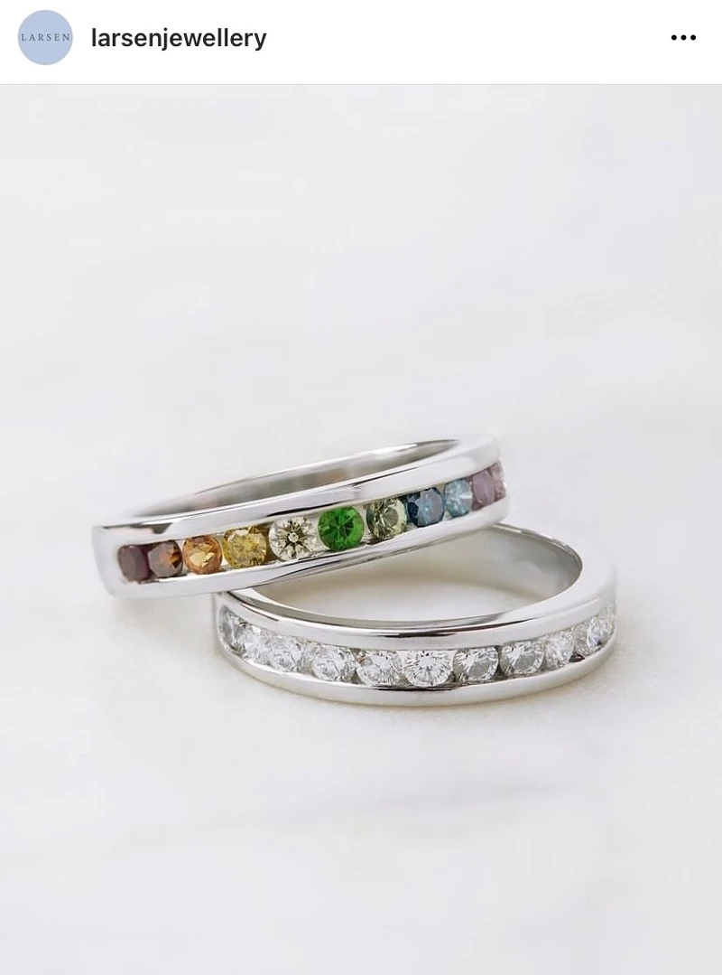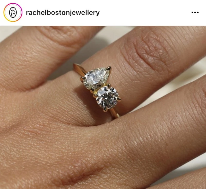 簡約的單鑽戒指正在捲土重來!S-kin Studio分享道:橢圓形和祖母綠切工的寶石越來越受歡迎,然而還是有許多新婚夫婦選擇圓形切工單鑽戒指,因為它是如此經典的永恆!有趣的是,Larsen Jewellery運營經理Kate Reid說,另一項備受注目的新設計趨勢為馬眼形切割的鑽石,其切工輪廓長而淺,這意味著與同等價格的圓形鑽石相比,新人會得到一顆在視覺上看起來更大的鑽石,且更具個人特色魅力。