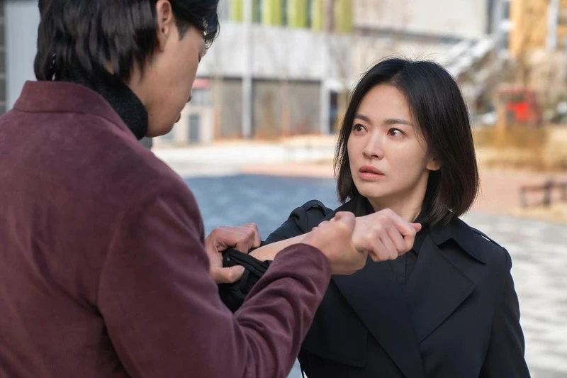 喬妹的招牌短髮時常出現《黑暗榮耀》中,而展開復仇之路的她,身上脫離不了一件黑色長版風衣外套,加上她又恨又殺的眼神,絕對是整部戲的名場面。