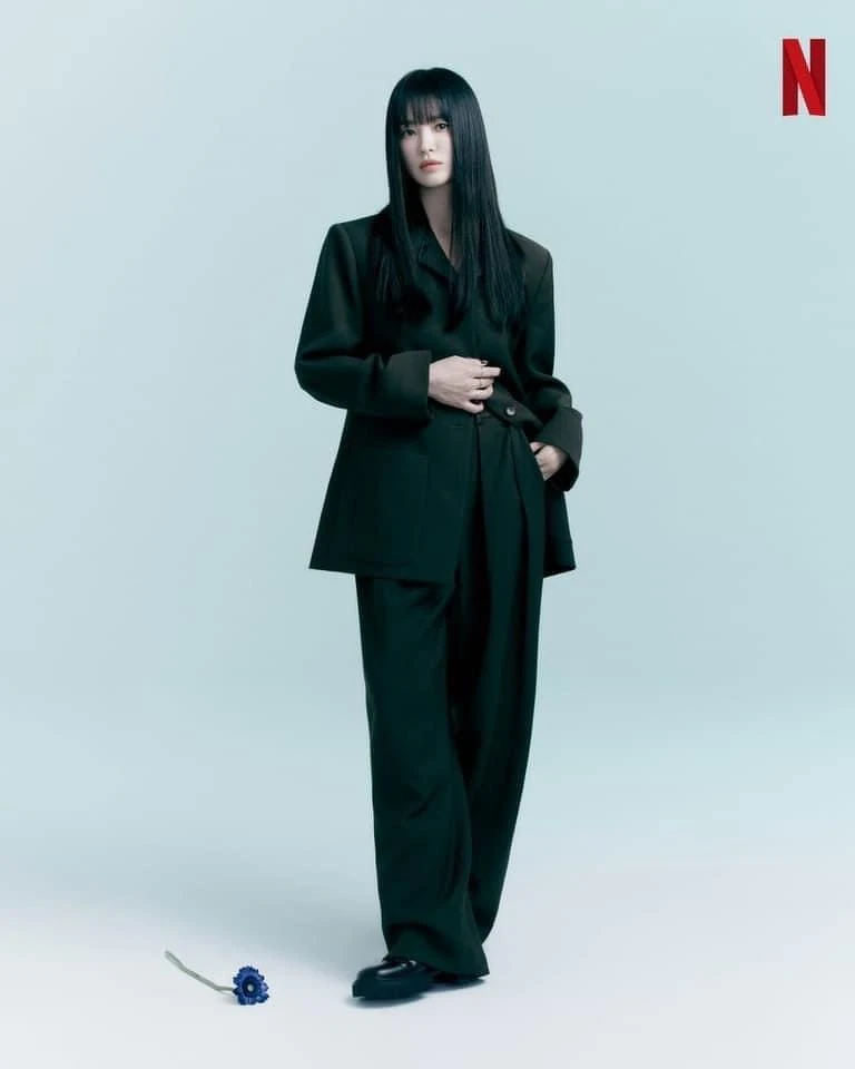 韓劇播出前釋出的形象照,宋慧喬以吸睛的妹妹頭髮型,搭配一身個性西裝登場,相較於以前偏向優雅風格的西裝造型,宋慧喬這身寬鬆版型的西裝為她增添一抹帥氣。