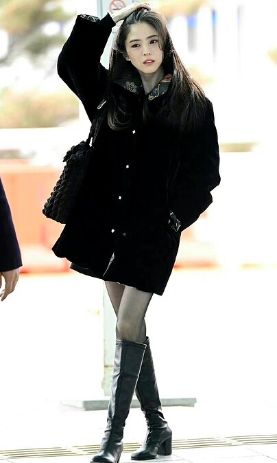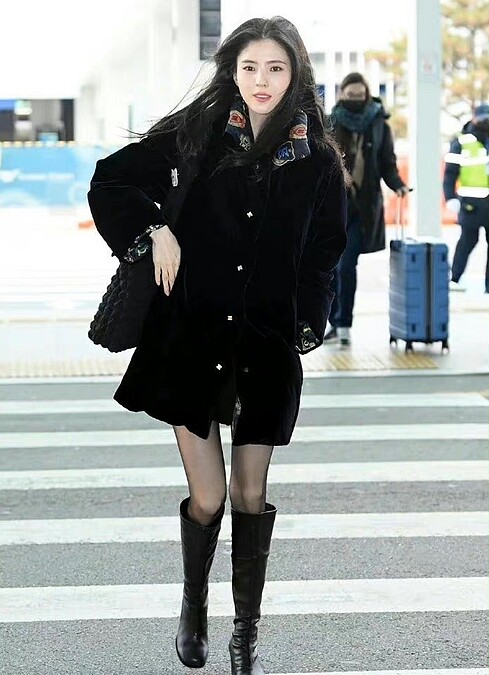 準備飛往英國參加頒獎典禮,韓韶禧穿著黑色絨面長版外套,搭配及膝長靴,又帥又甜的機場時尚,在照片曝光後,隨即引發粉絲們熱烈討論,紛紛直呼女神時在太美了。