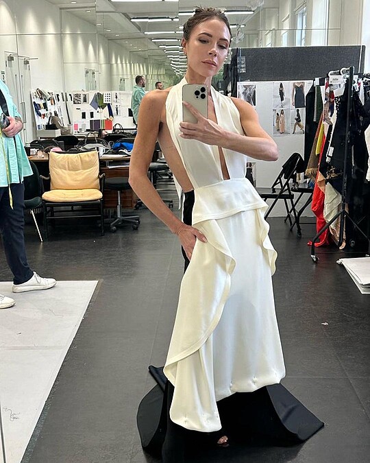熱愛時尚圈的維多利亞,2008年創立個人品牌Victoria Beckham,每每秀後的謝幕,她多以簡約襯衫、T-Shirt搭配牛仔褲現身,搭配高達10公分的高跟鞋,展現她幹鍊的一面。