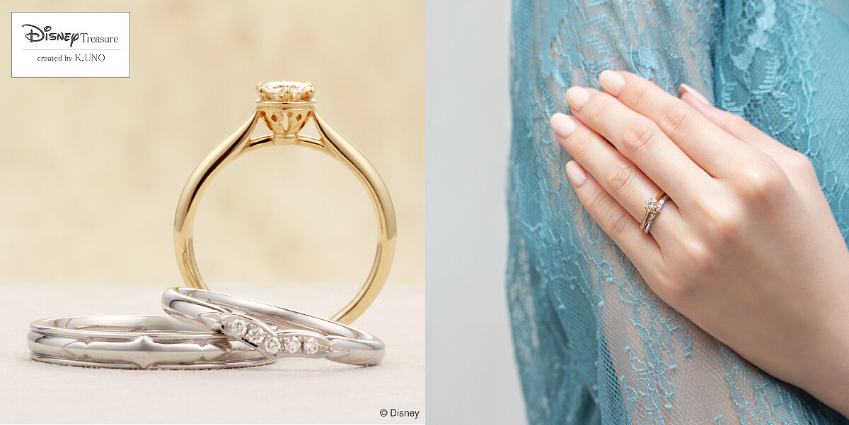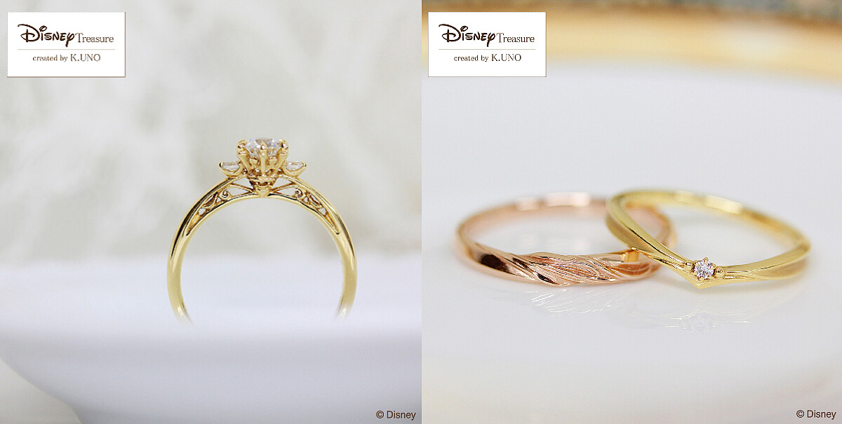 浪漫邂逅、真心相伴、患難與共的真摯愛情,都是迪士尼經典動漫想傳遞給大家的情感真諦, K.UNO都能以藝術美學X精湛工藝的方式,將影像作品中象徵愛情的細節元素或場景部分完美呈現,而且還是以讓人超驚喜、超乎想像的時尚婚嫁珠寶樣貌,每一處細細端倪都能發現豐富巧思。