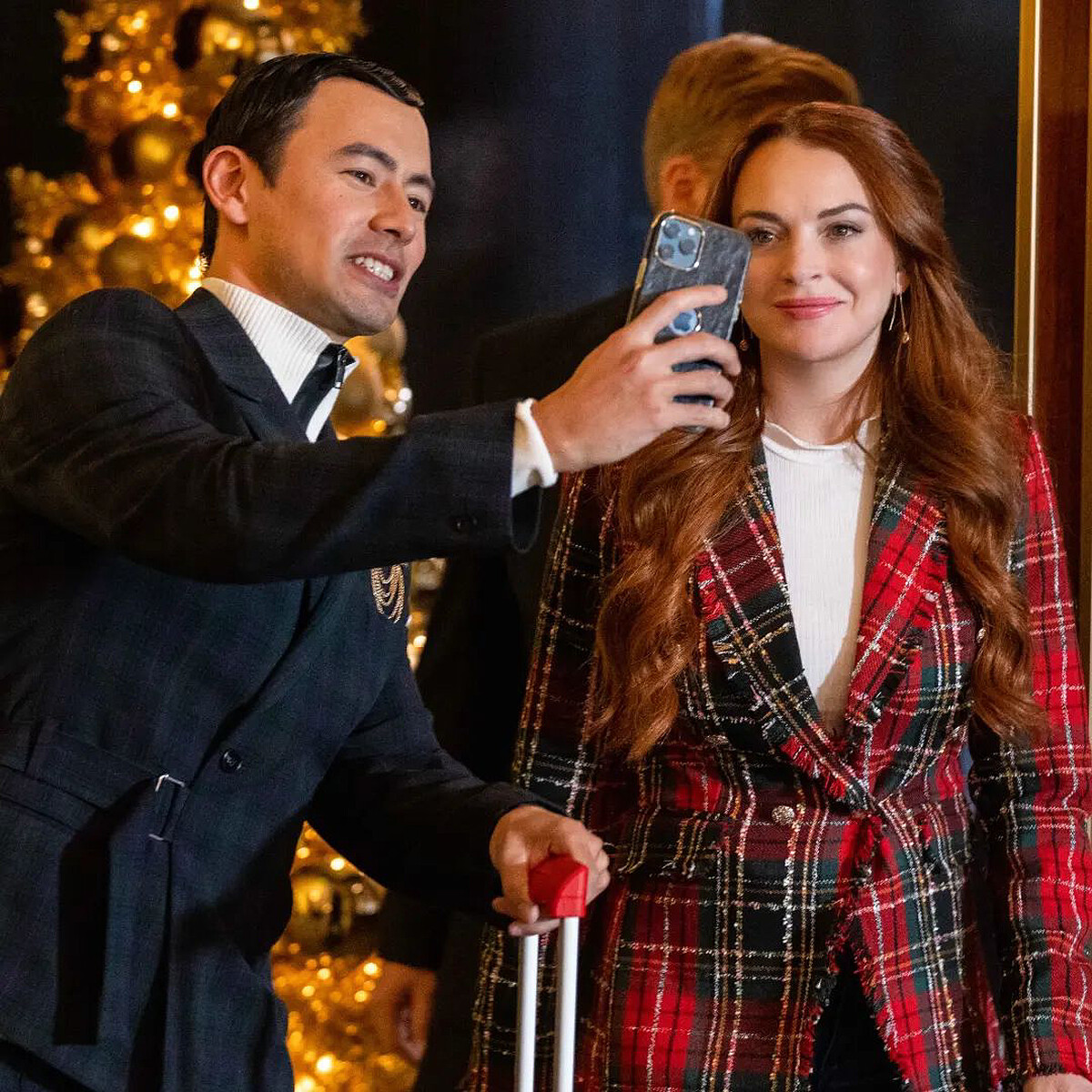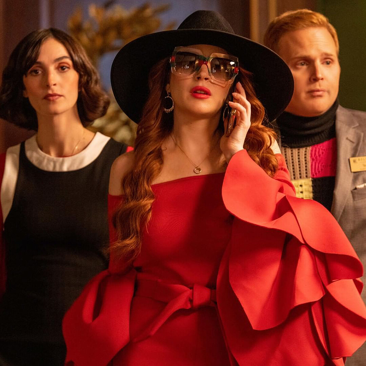 紅綠兩色絕對是最能代表聖誕節的顏色,今年強勢回歸的千禧女王琳賽蘿涵,最新上檔的電影《聖誕傾情》,不僅能看到琳賽蘿涵所飾演的飯店千金找到自己的人生意義和真命天子,也能欣賞到她如何翻轉「紅配綠」給人的幽默形象,像是一襲正紅色連身褲搭配經典Gucci紅綠條紋太陽眼鏡創造的奢華感,或以紅、綠、白相間的菱格紋修身西裝外套,打造出Effortless Chic風格,以及綠色羽絨夾克搭配紅綠格紋圍巾展現休閒感,每一套都在提醒我們琳賽蘿涵如同百變天后的穿搭能力。