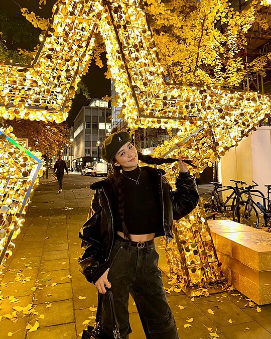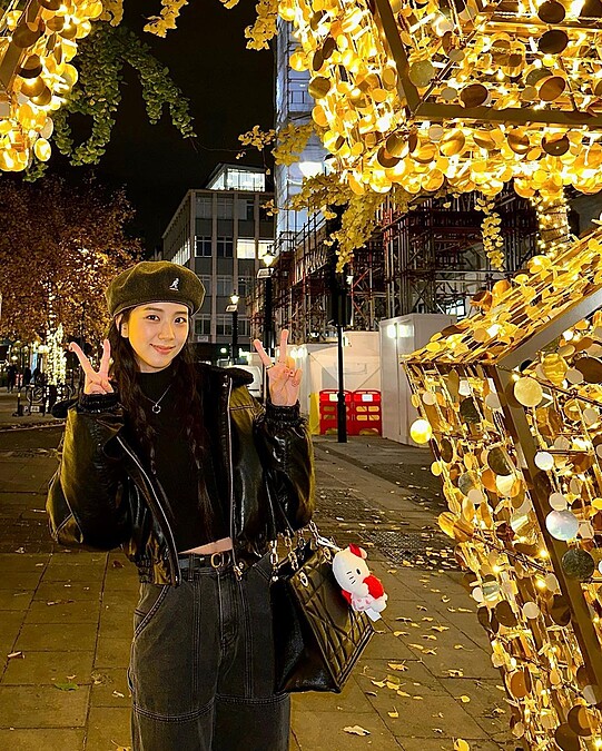 現正忙著世界巡為演唱會的Jisoo,工作之餘也不忘在各地散心、留下旅遊美照。日前來到倫敦,Jisoo一身全黑打扮卻有層次感——從頭上的Kangol貝蕾帽、短版的高領上衣、漆皮感的飛行員外套、洗舊感的寬版牛仔褲到手上的Dior Essential托特包,都是黑色卻因不同材質而有時髦細節感。