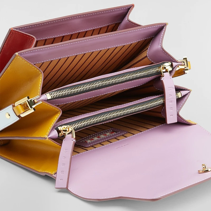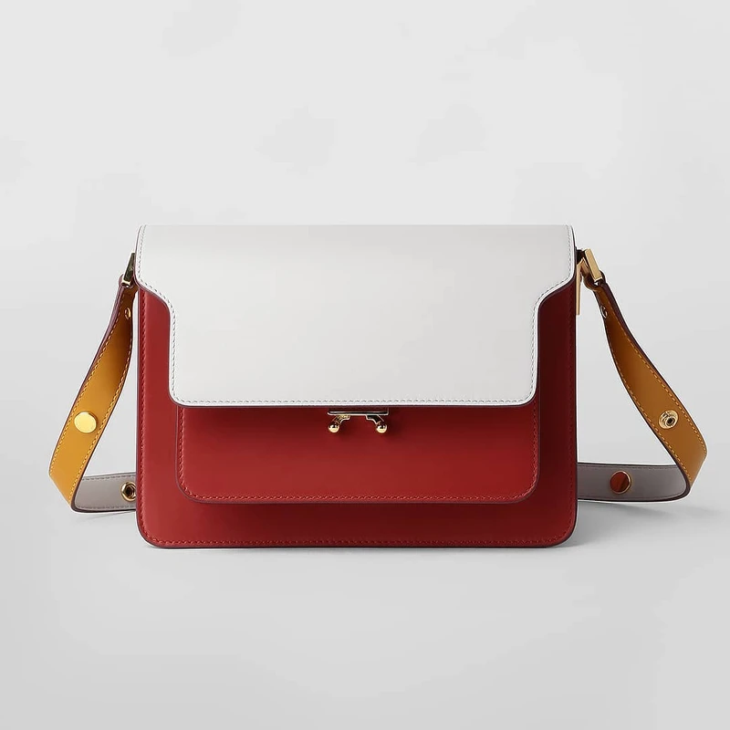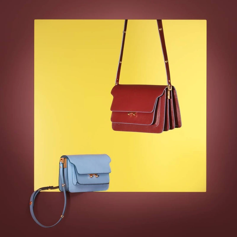 起初Marni創立時,設計師Consuelo Castiglioni以混搭、撞色作為品牌核心概念,並延續到風琴包Trunk上,除了有經典黑、純白色、深棕色、氣質米色外,Marni在每一季都會為Trunk推出繽紛配色、對比撞色款。