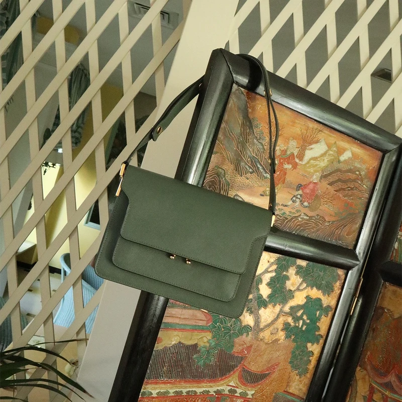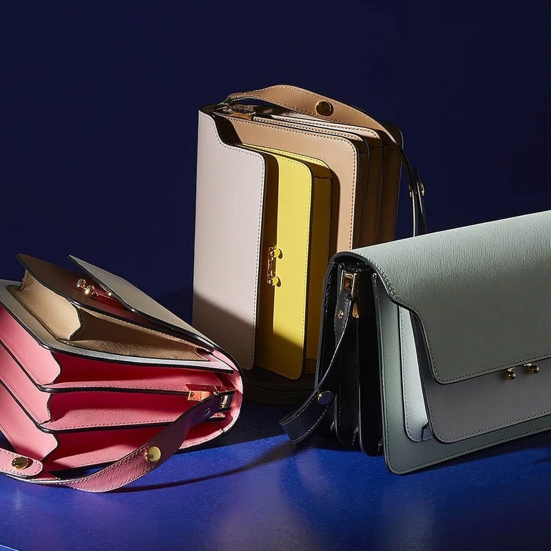 雖然Marni是1994年誕生,但品牌一直到1998年才開始發展配件系列,而明星手袋Trunk則是在2014年問世,因為包身側邊就像樂器風琴而得名,且不同於其他精品包將品牌標誌擺在包身上,Marni低調不印上任何Logo,但卻不影響包控們收藏的欲望。