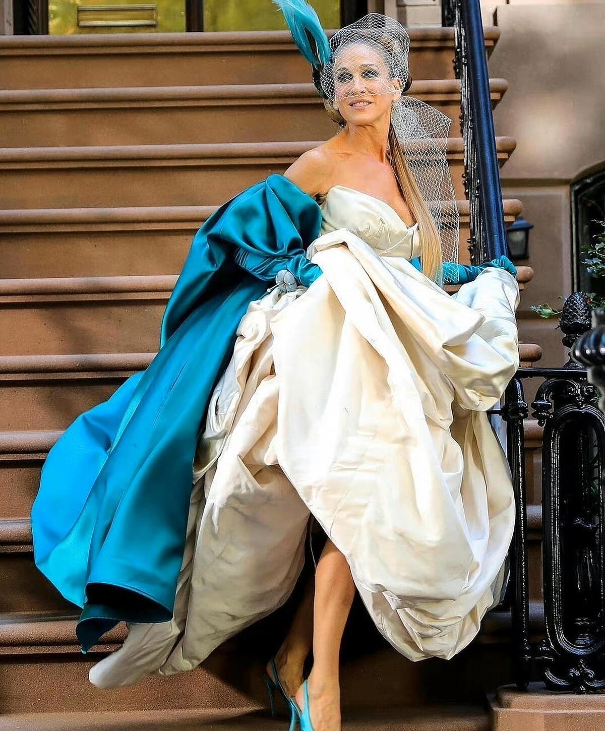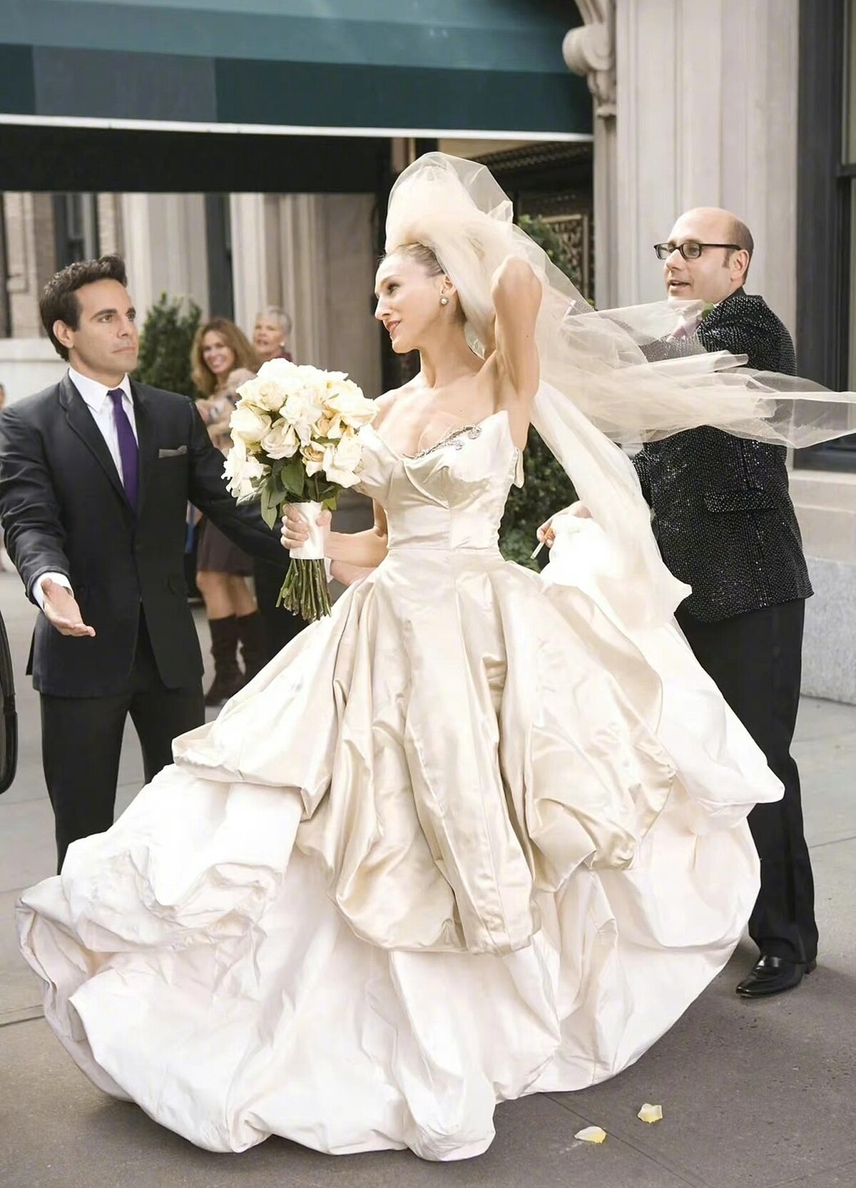 穿著Vivienne Westwood最具代表性的明星,那就是影集《慾望城市》的女主角凱莉布雷蕭,要嫁給大人物時所穿著的婚紗,正是由Vivienne Westwood親自操刀,而這件婚紗也在第二季時,經過改造後於凱莉身上再次亮相。
