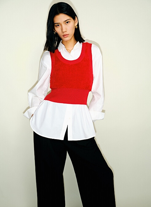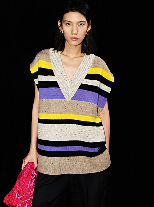 寬鬆版型的針織背心,無論男女都能營造輕鬆的舒適氣息,可以正式也能休閒的特質深得人心。