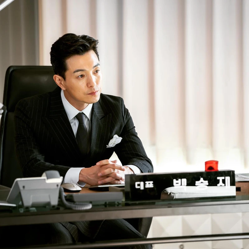 與宋慧喬所在Netflix影集《黑暗榮耀》(The Glory)有著微妙互動的「河度領」鄭星一,演活中年大叔的熟男魅力,加上得天獨厚的衣架子身材穿什麼都好看!