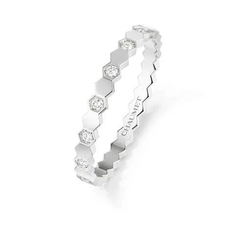 CHAUMET Bee My Love戒指,18K白金,半鋪鑲明亮式切割鑽石,2.5毫米,售價HK$20,900