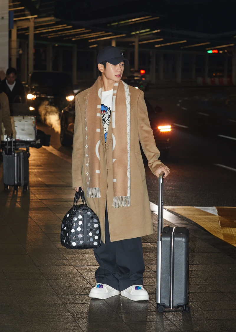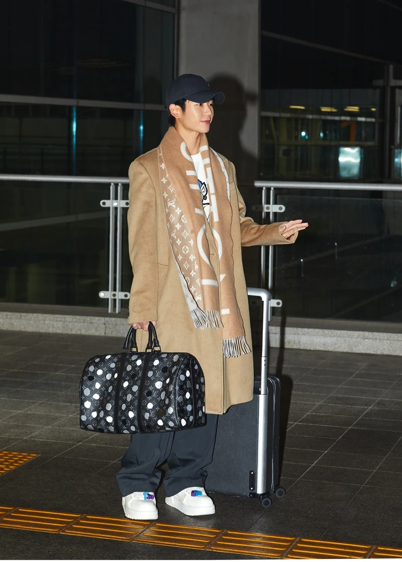 為了路易威登(Louis Vuitton)台北101旗艦店開幕活動炫風登台的國民年下男丁海寅,從仁川機場飛抵台灣時,以暖男形象棕色大衣配上LV棒球老帽,手上則是年初LV和草間彌生聯名旅行袋現身,不禁讓人回想起他和孫藝珍主演韓劇《經常請吃飯的漂亮姐姐》中的經典畫面。