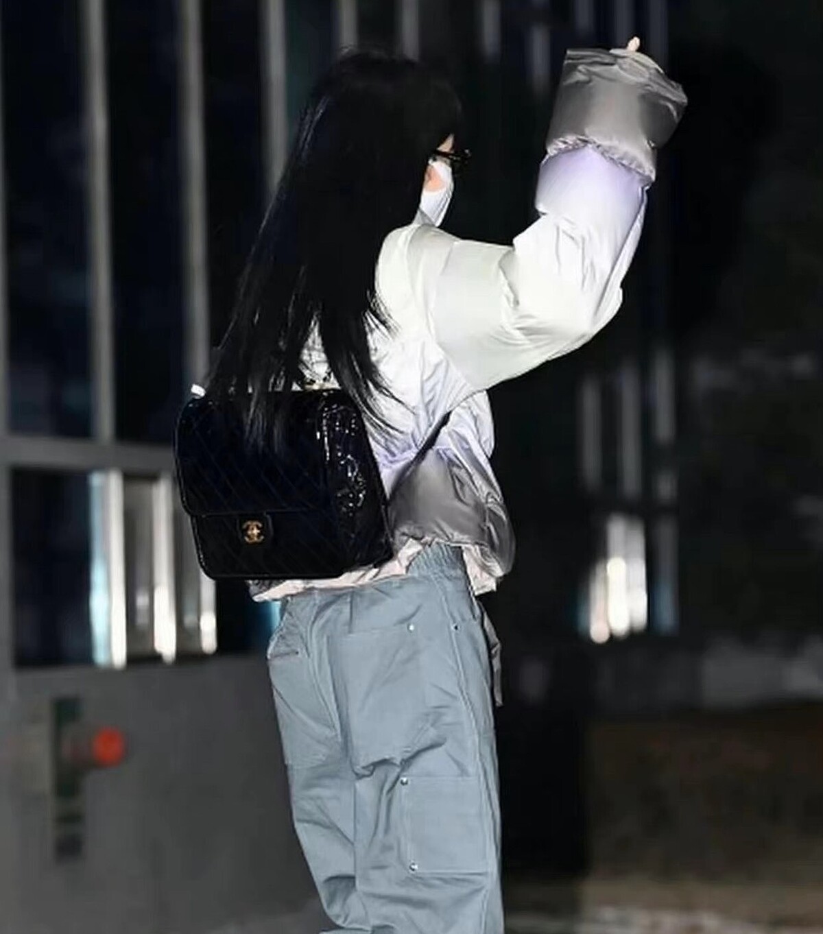 走到哪裡都是目光登焦點的人間香奈兒Jennie,不僅披著Chanel標誌圍巾,還背著香奈兒超熱賣的漆面皮革後背包,相信Jennie這一背,這個小香包的價格又要在向上提升不少。