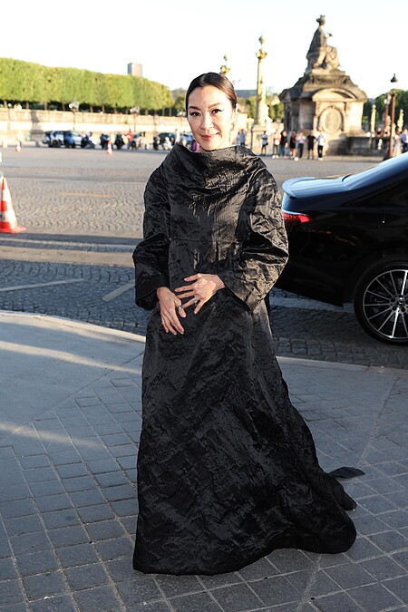 在2022巴黎高訂週受邀看秀的楊紫瓊,連續兩場都是以全黑的禮服現身——一件是貼身版型禮服,絲緞材質低調卻不乏細節,像是澎澎的宮廷袖、領口前的垂墜蝴蝶結,用造型感強烈的珠寶耳環點綴,俐落之餘也富饒女人味。