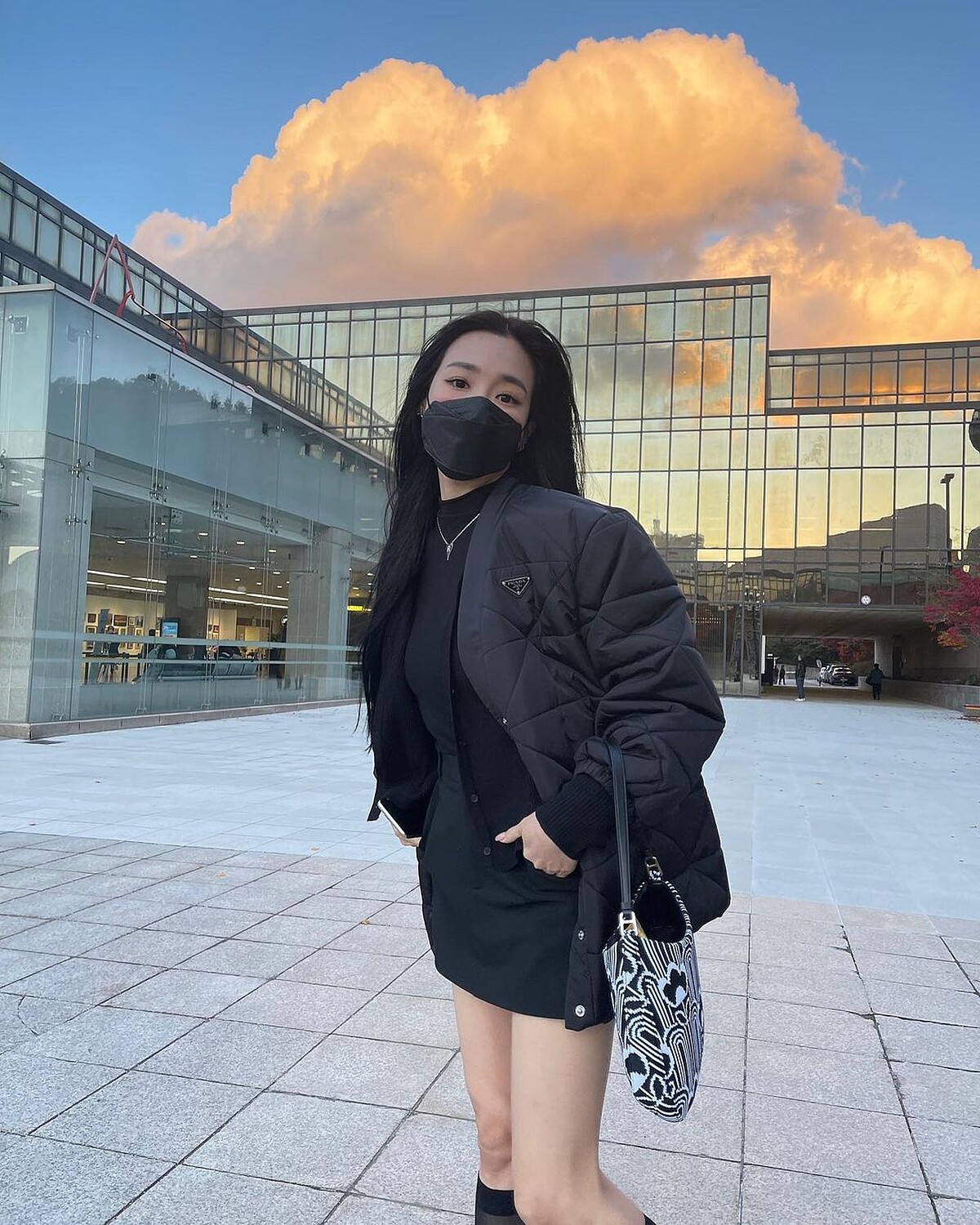 在《財閥家的小兒子》飾演能幹秘書的少女時代成員Tiffany,以黑色高領內搭和黑色短裙,搭配Prada經典三角壓紋羽絨服,大方露出自己白皙筆直的長腿,展現略微性感的個性穿搭。