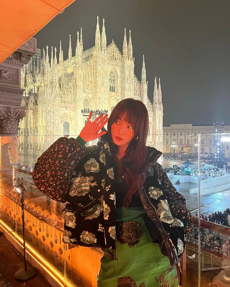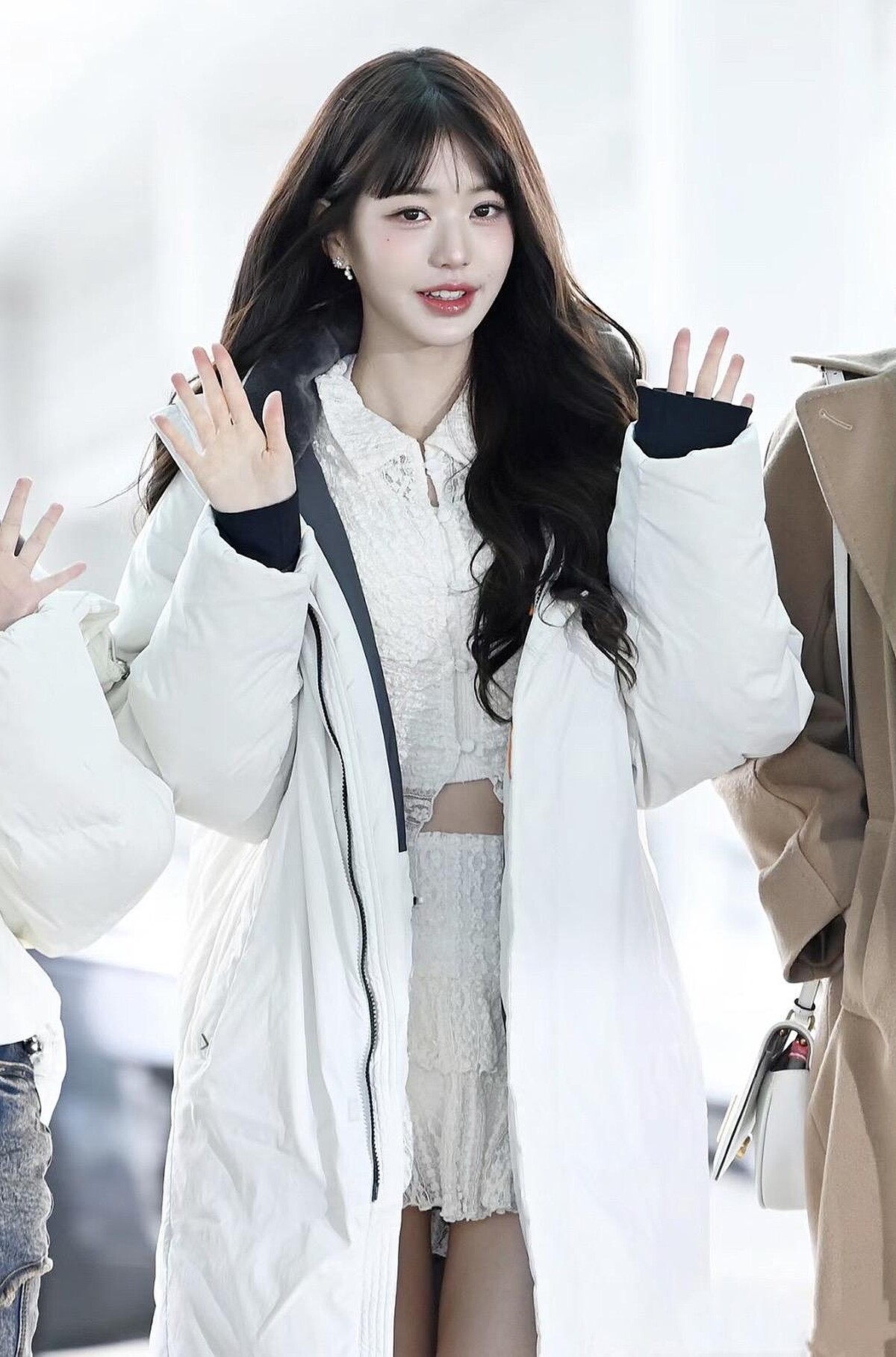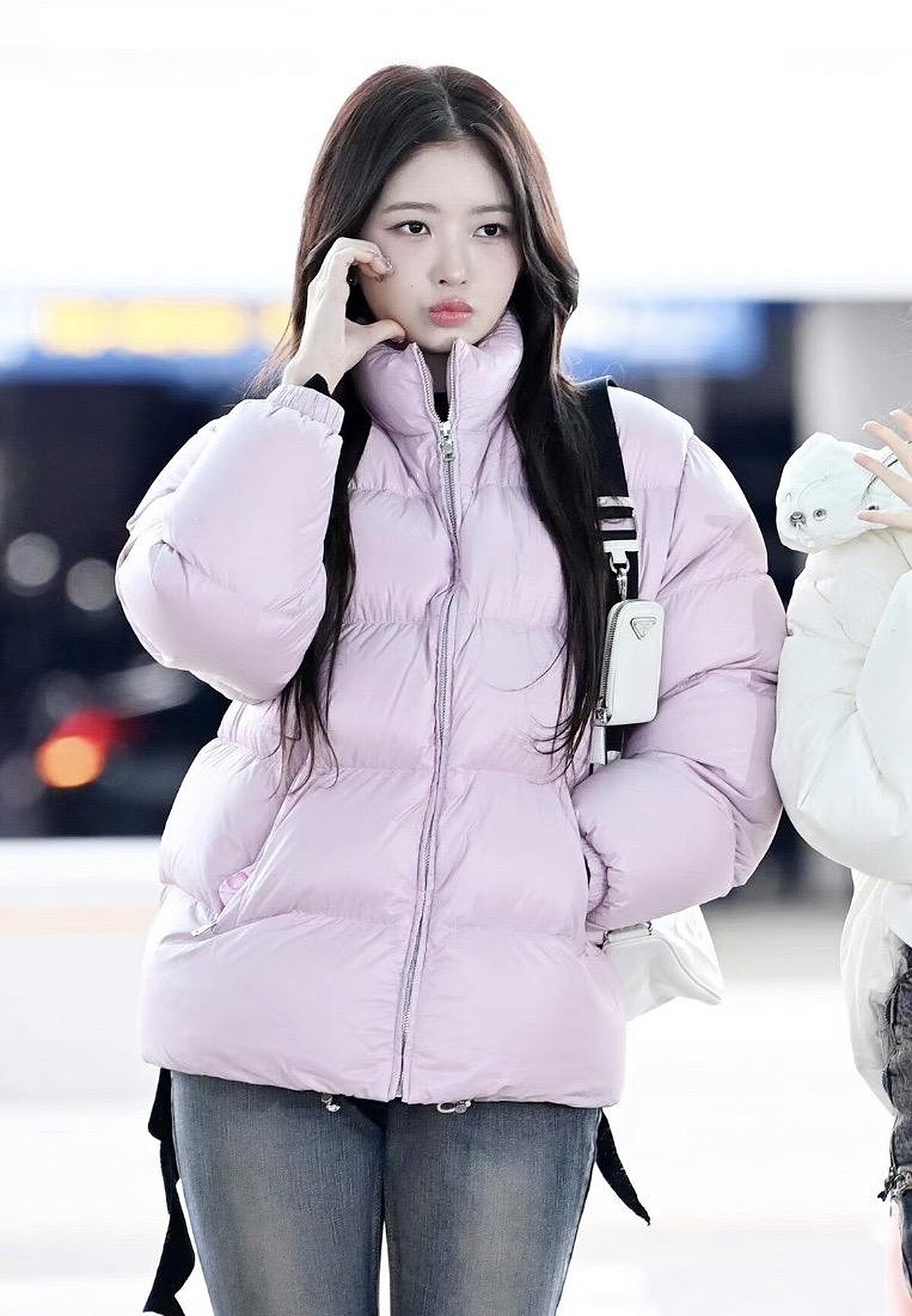IVE另一位成員直井怜在機場時則是選擇Prada的粉色羽絨外套禦寒,麵包般澎潤的輪廓加上粉嫩色彩,為冷冰冰的天氣增添一股活力暖意,讓造型顯得特別軟萌。