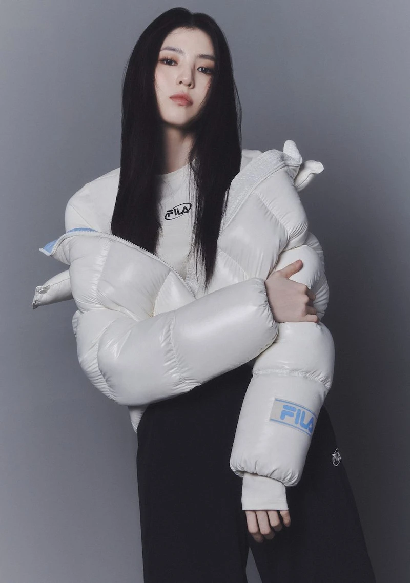 身為FILA全球代言人,韓韶禧今年冬天為FILA拍攝了MILANO DOWN羽絨衣系列廣告,極澎的空氣感羽絨衣以合身短版版型為主,穿上後不必擔心身材比例走調,輕量而保暖,冬天拍照時就可以學韓韶禧「外套不穿好」的方式耍美。同時韓韶禧也身兼Giordano的韓國代言人,她同樣在羽絨衣內搭配短版上衣,一舉手辣腰立刻顯現!