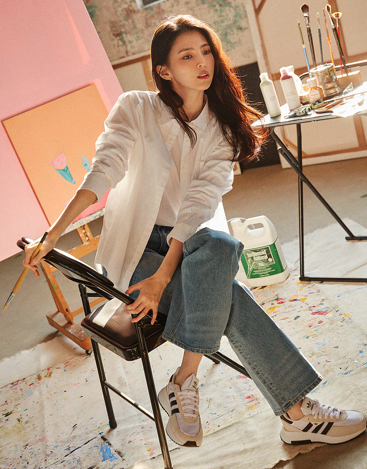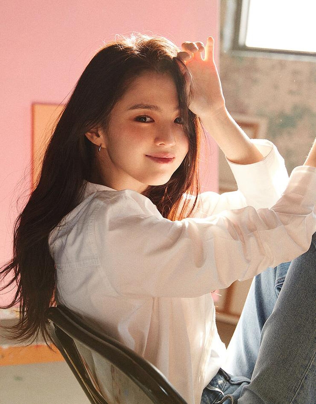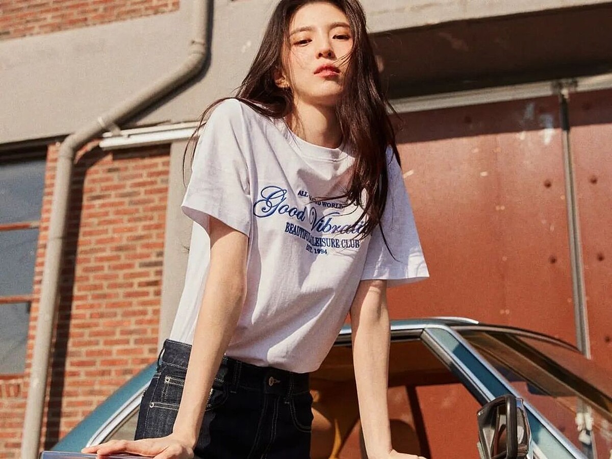 像是韓韶禧套上率性的丹寧外套,內裡的T恤下擺採French Tuck的方式,整體率性又減齡。