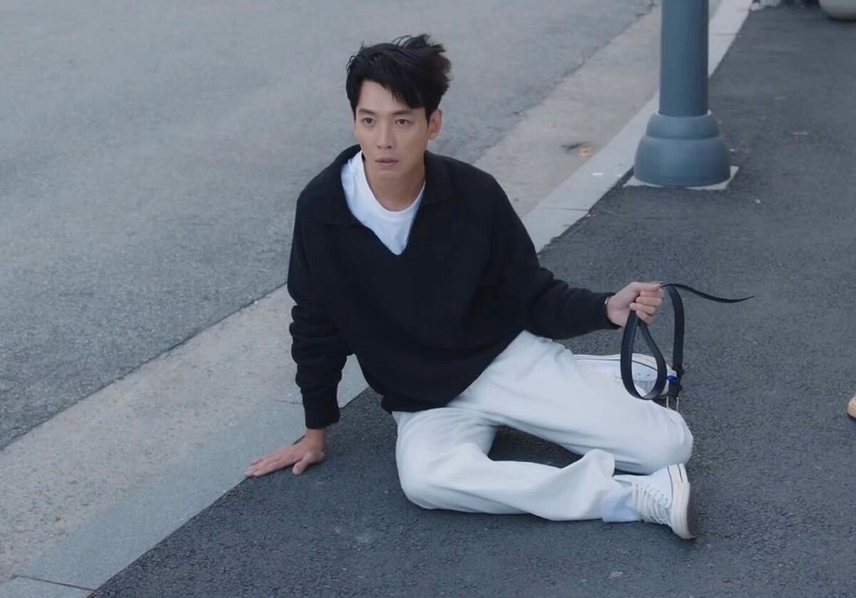 認識鄭敬淏的人都知道,他有一個相當女生的綽號「鄭少女」,劇中的他因為擔任私人家教被同事發現時,跌坐在地上的這一幕,是不是秒懂他為什麼會被叫做鄭少女,而他腳上踩得白色帆布鞋為Converse All Star高筒帆布鞋款。