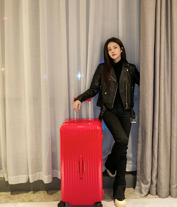 RIMOWA胖胖箱愛好者還有童瑤,她入手Essential系列亮紅色款式,如果出國住的飯店坪數不大,胖胖箱是再合適不過的選擇。