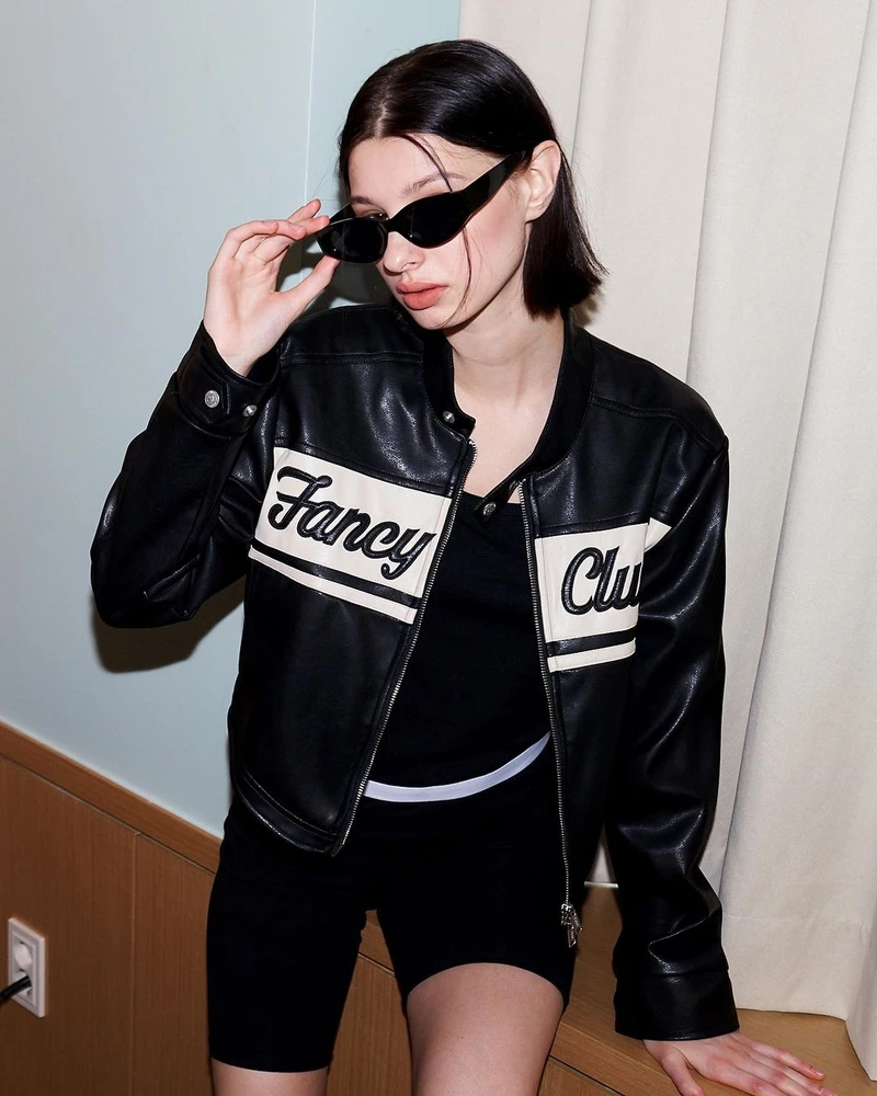 韓韶禧每每現身都時髦破表的機場時尚,曾穿著一件胸前印有英文字母的皮革拉鍊夾克,是來自暗黑系風格的Nasty Fancy,品牌以當今最夯的Y2K風格為主要設計。