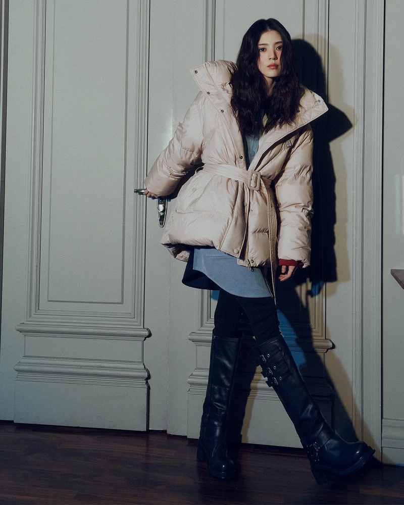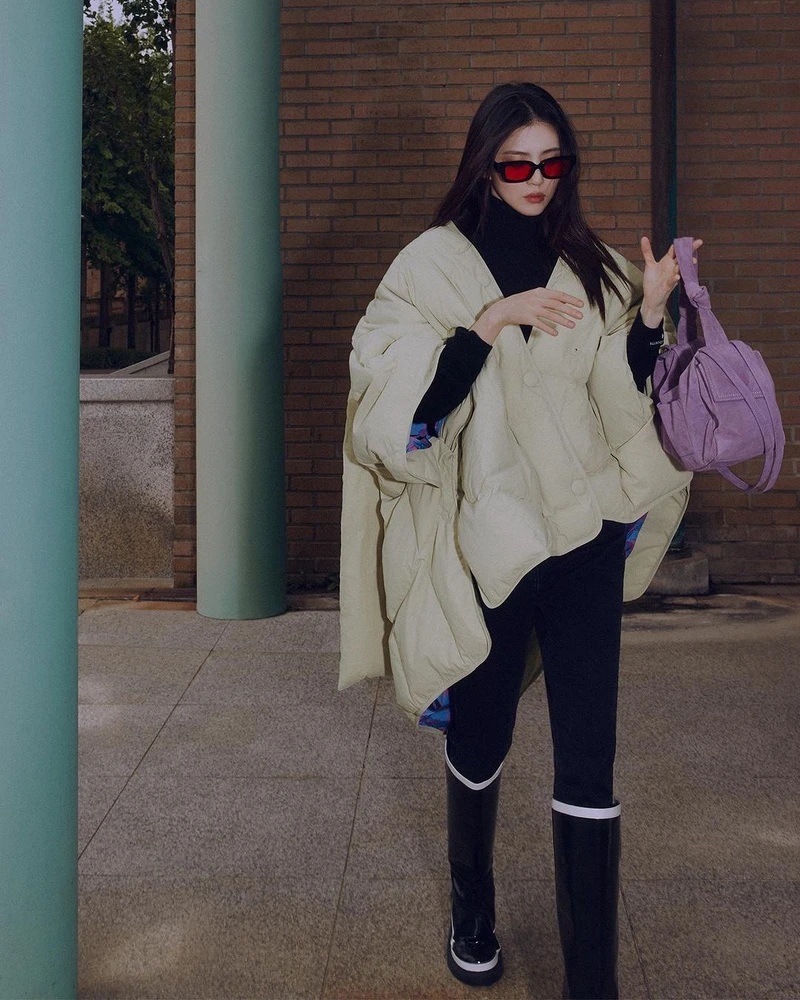 如果你是哈韓迷,那對EENK或多或少會有印象,因為在不少明星身上都會看到他們家的單品,而韓韶禧身上這件雙面印花鋪棉羽絨外套,一件兩穿的設計,引起粉絲們爭相搶購,當然你可以學歐膩當洋裝穿,展露出自己修長的腿部線條。