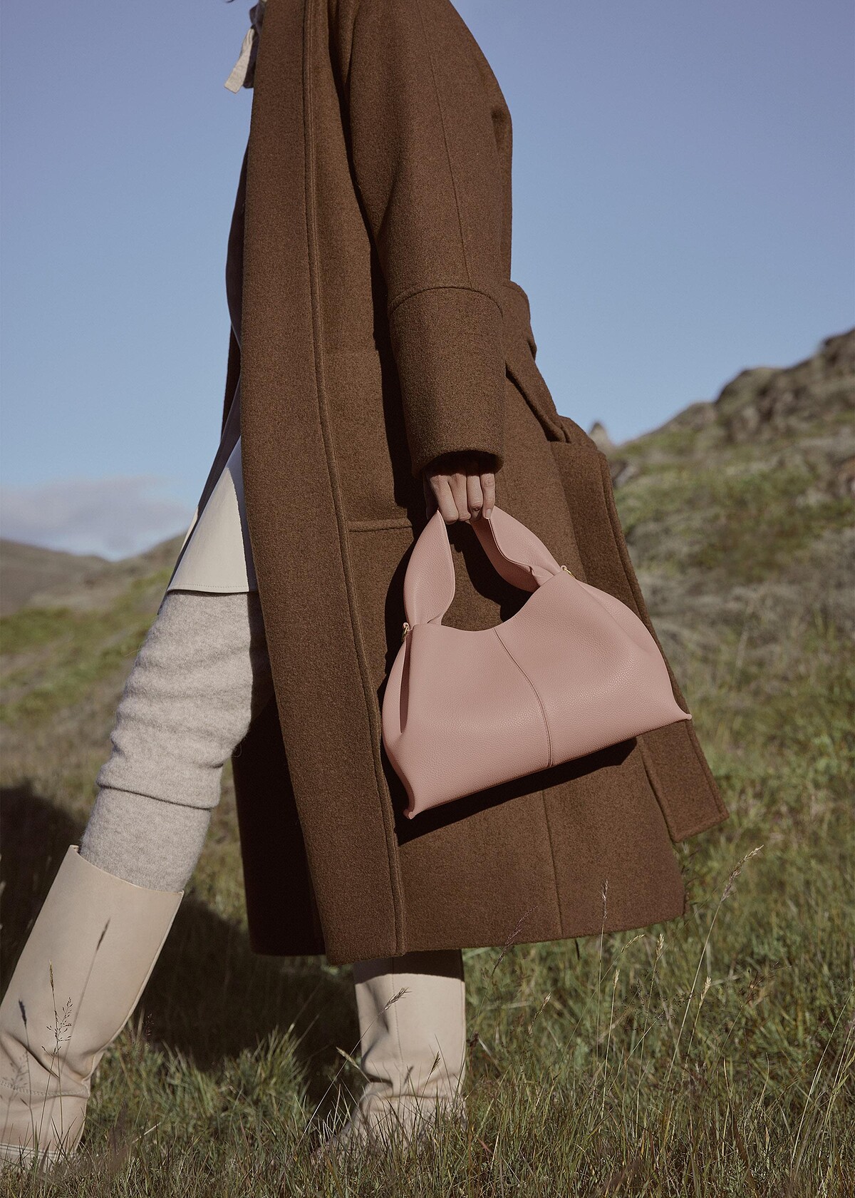 為情人節拍攝親暱形象照引起迴響的Burberry,為經典包Lola、Pocket推出粉色系外衣,清新淡雅配色和整組形象照形成強烈對比,成功讓眾人的目光更具焦在配件上。