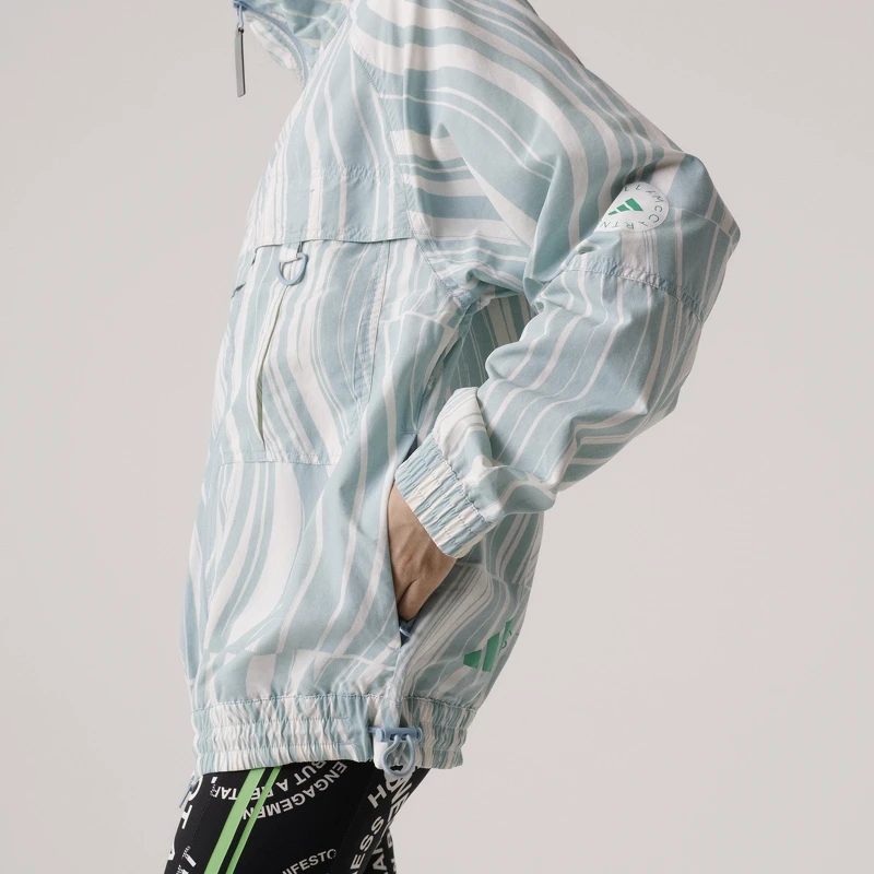 adidas旗下有許多與設計師、明星的合作支線,隸屬於adidas Performance的adidas by Stella McCartney是其中之一,而此支線最吸引人的原因在於Stella McCartney的時裝設計背景,把像是防風外套如是的機能服做出潮流個性;再者,Stella McCartney身為永續時尚先驅,與愛迪達合作維持一貫的環保堅持,本系列服裝的用材皆為100%再生材質。