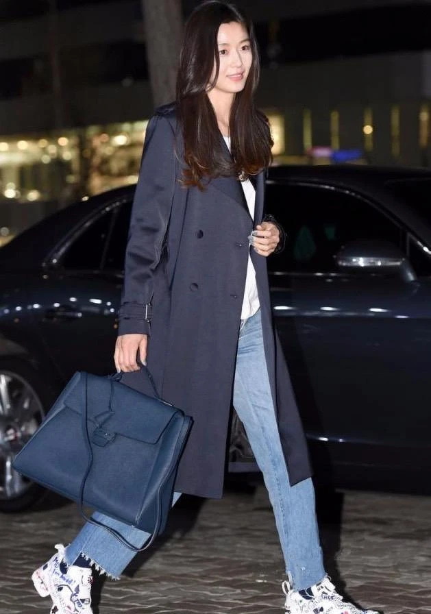 從仁川機場出境時,全智賢以白色-Shirt、牛仔褲搭配Burberry最熱賣的明星商品卡其色風衣亮相,只能說女神就是女神,就算素顏登場也一點沒有影響她的迷人魅力。