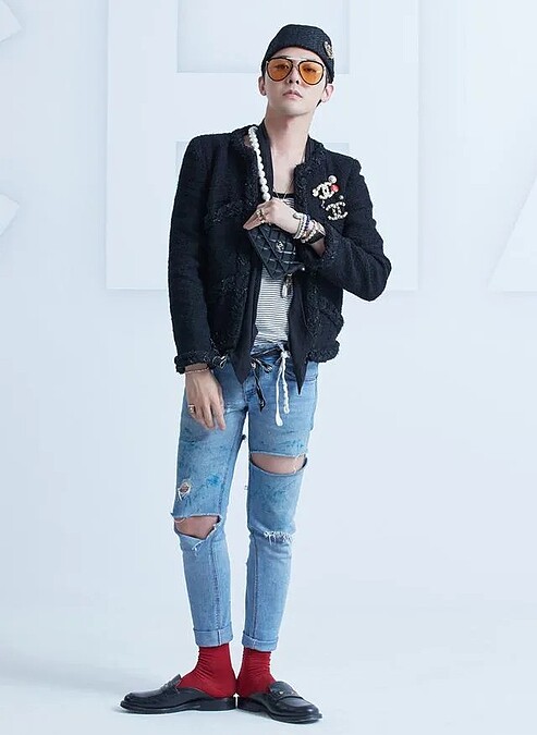 香奈兒最經典的小黑外套穿在GD身上,展現出歐巴無人能敵的時尚品味,真不愧是行走的時尚教科書。