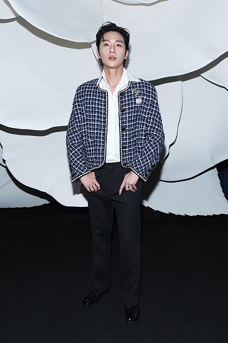 各位女孩們,看完朴敘俊的看秀造型,回頭就該幫另一半也購入一件小香外套,歐巴以白色襯衫、黑色西裝長褲的紳士造型,外頭搭配藍黑色格紋小香外套,帥氣指數全場之最,可以把小香外套穿得如此帥氣也就只有朴敘俊辦得到。