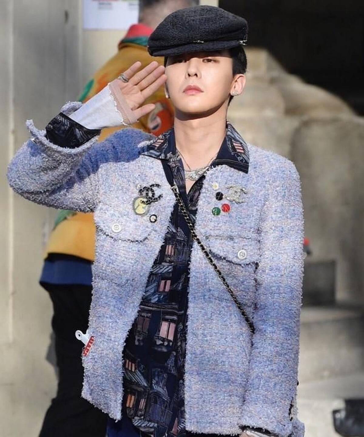 香奈兒最經典的小黑外套穿在GD身上,展現出歐巴無人能敵的時尚品味,真不愧是行走的時尚教科書。