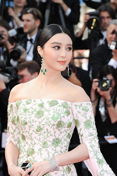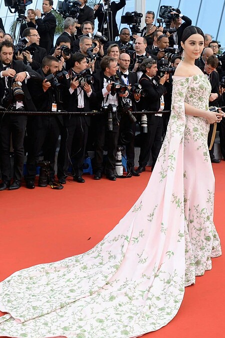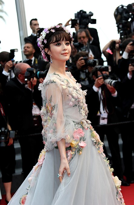 范冰冰出席第68屆坎城影展時,其中兩套紅毯華服也讓人印象深刻,一套是由Ralph&Russo特別訂製的平口花卉刺繡長禮服,從肩而下的長裙襬設計,讓她宛如女王般氣場十足;另一套則是以花朵為裝飾的雪紡紗長裙,范冰冰特意搭配花朵髮飾,就好像花仙子降臨。