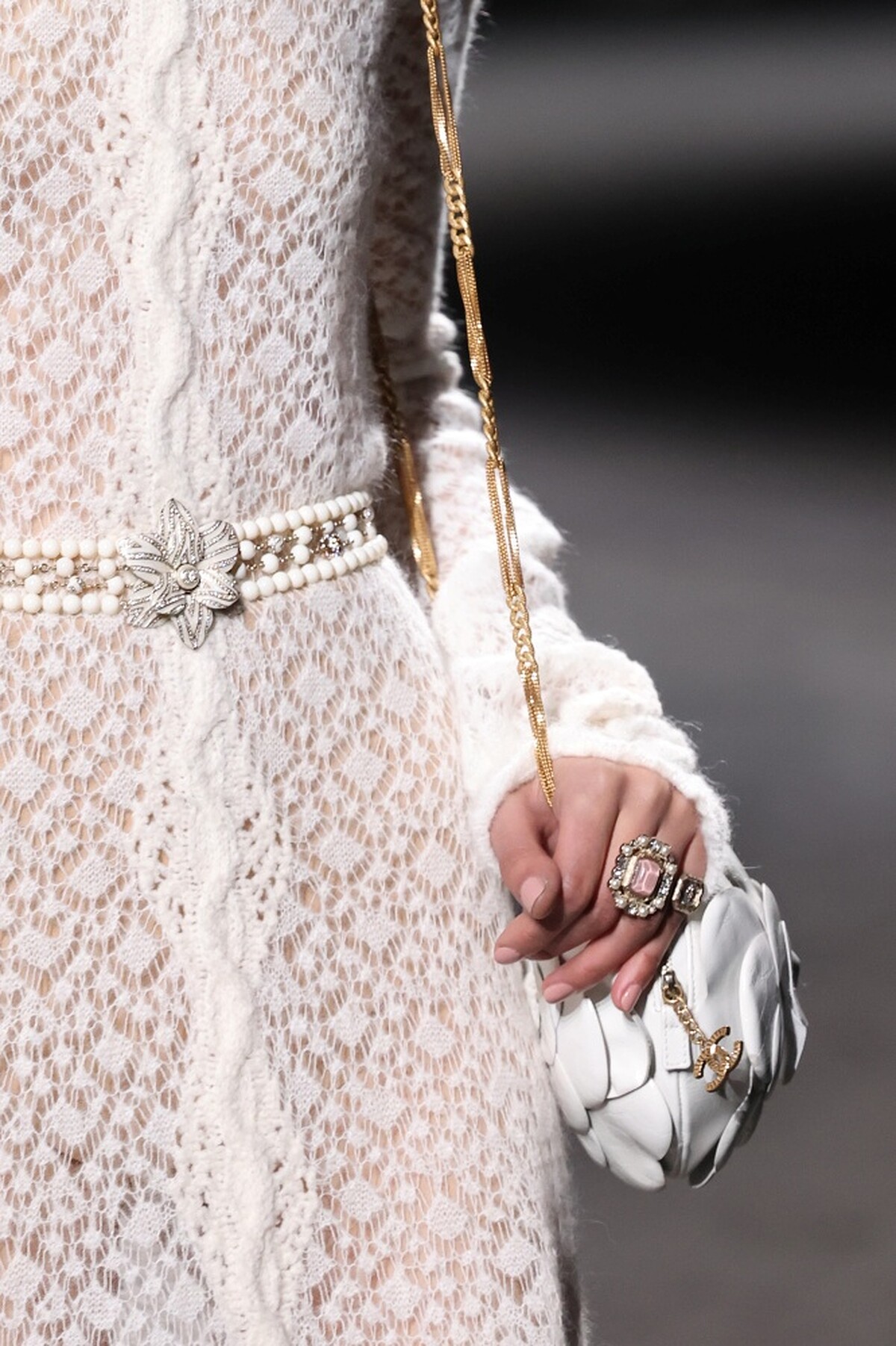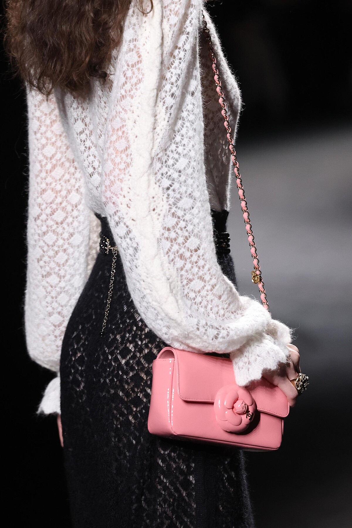 Virginie Viard同時也將山茶花直接作為手袋造型,包款模擬出山茶花的花瓣形狀,搭配上香奈兒經典皮穿鍊設計,打造出全新山茶花小包,你不難想像它在下一季會有多熱賣。