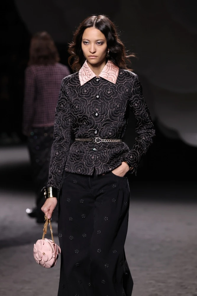 Virginie Viard同時也將山茶花直接作為手袋造型,包款模擬出山茶花的花瓣形狀,搭配上香奈兒經典皮穿鍊設計,打造出全新山茶花小包,你不難想像它在下一季會有多熱賣。