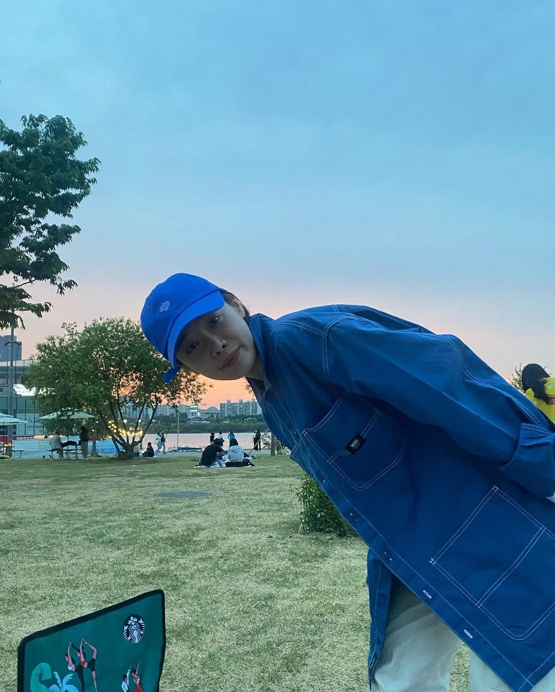 不只是愛棒球帽,金赫拉還偏好藍色系,這頂來自MLB的棒球老帽選的也是藍色,而平時不是T-Shirt、帽TEE,就是率性的襯衫、西裝外套作為穿搭風格,戴一頂鮮明配色的棒球帽,就能有畫龍點睛的效果。