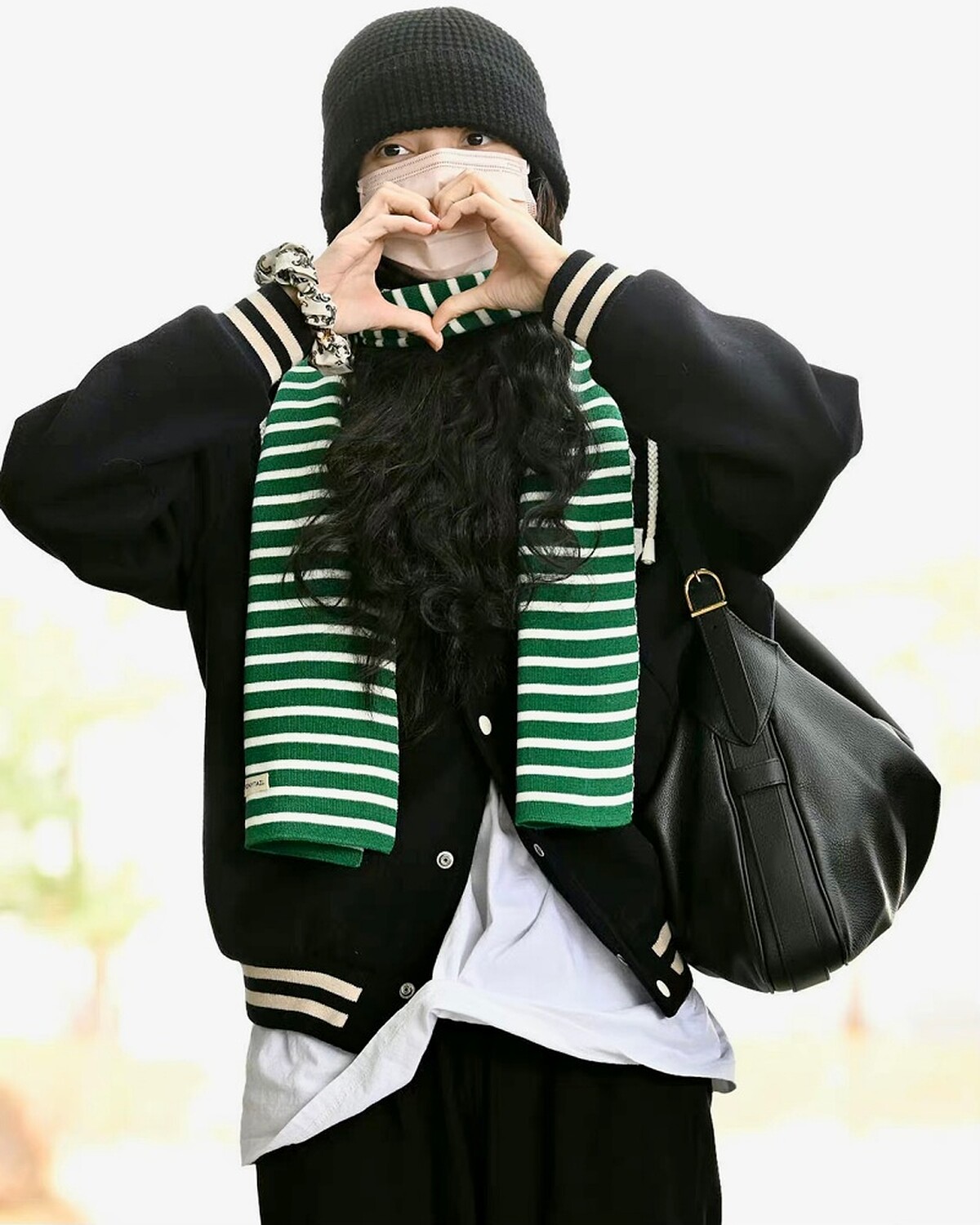 Lisa走的是休閒風,簡單白色T-Shirt和黑色長褲,搭配CELINE經典棒球外套和肩背包,相當隨性且舒適。
