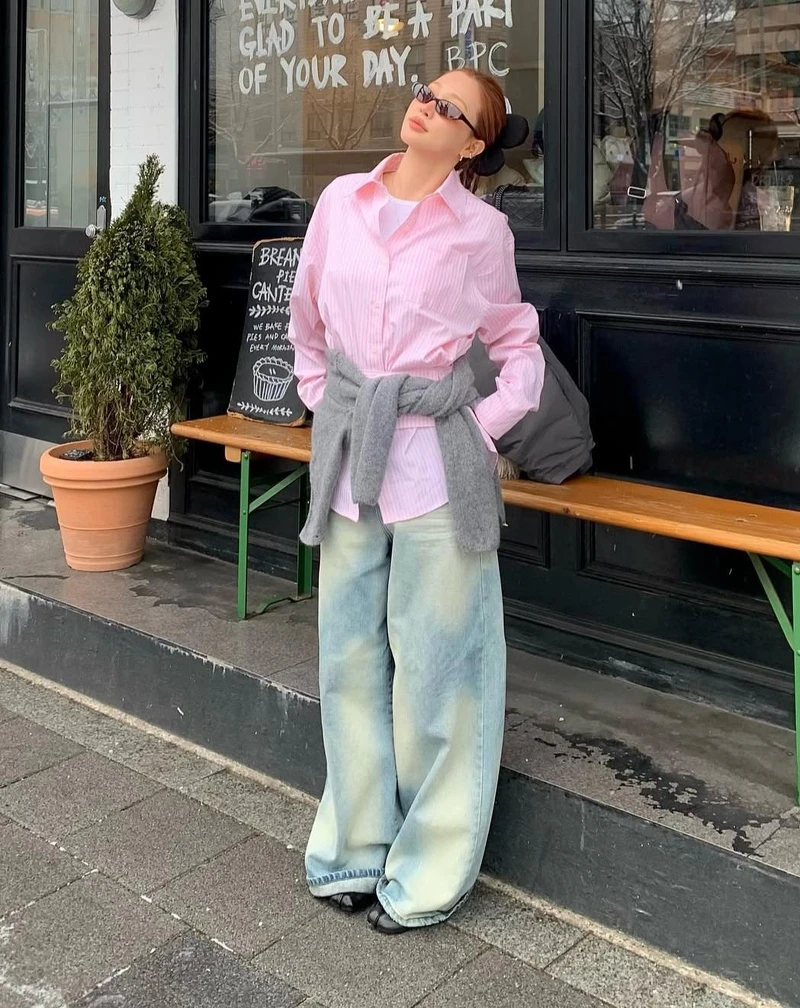 1. 原色/深藍色牛仔褲:搭配襯衫的知性穿搭